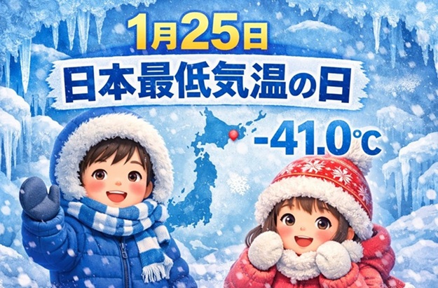 1月25日は、1902年(明治35年)1月25日、北海道旭川市(当時上川測候所)で日本の観測史上最低気温となる氷点下41.0℃を記録した日として「日本最低気温の日」に制定されています。